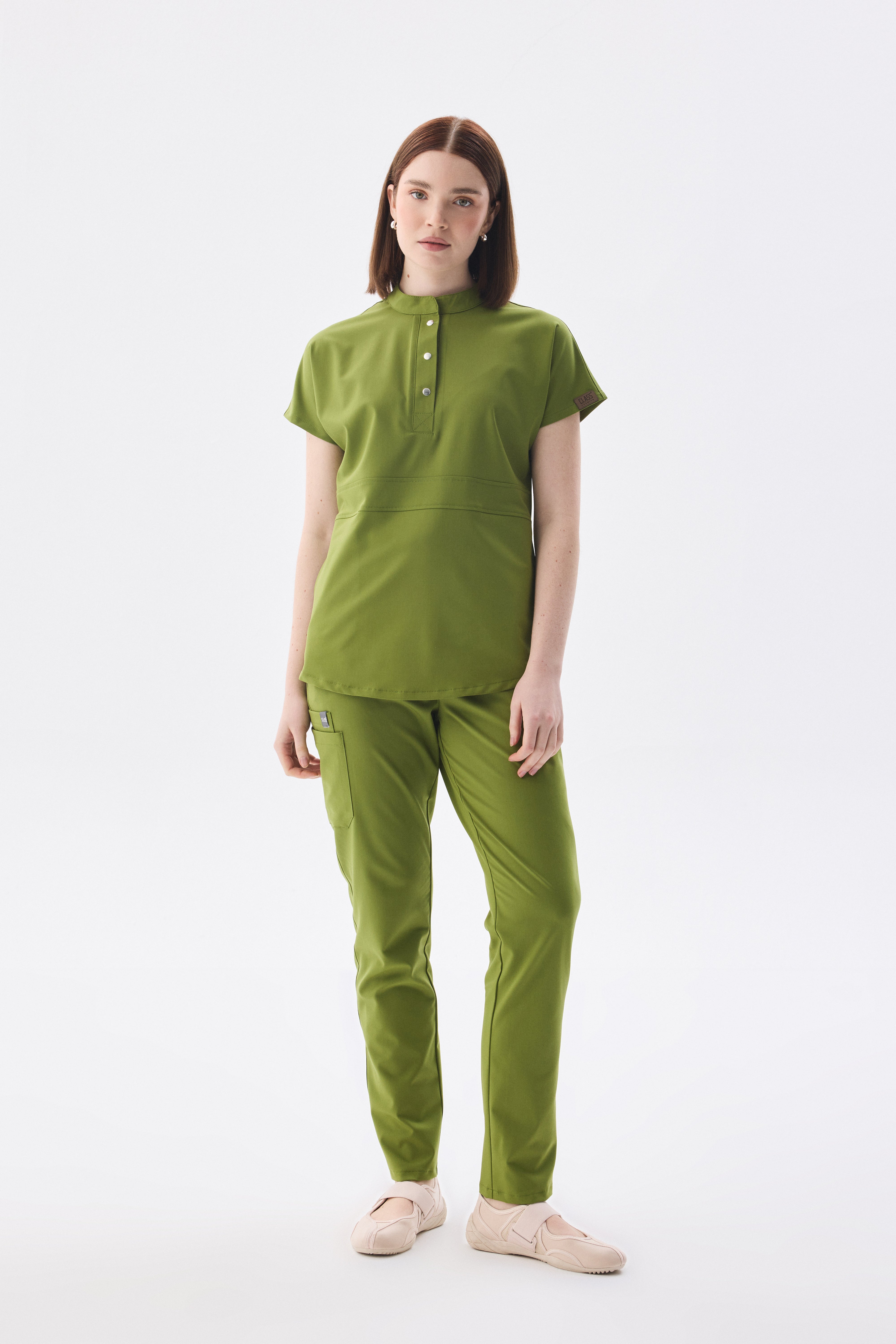 Hayır. KumaşımızdakiViscoseiçeriği nefes alabilirlik sağlarken, özel dokusu nem yönetimine yardımcı olur. Böylece uzun vardiyalarda bile kuru ve rahat kalmanızı destekler.