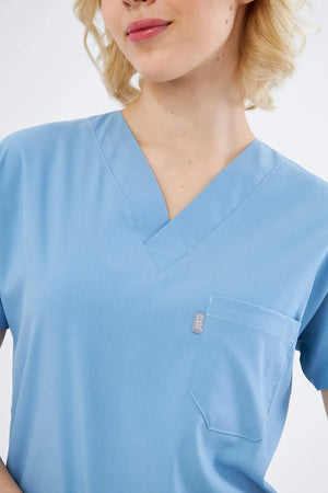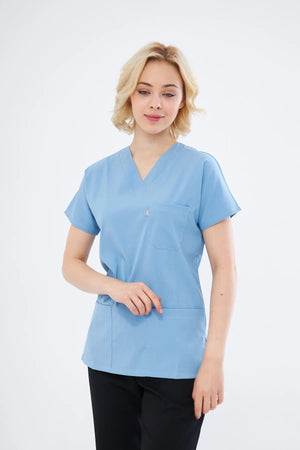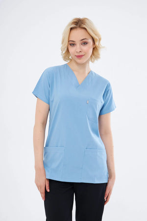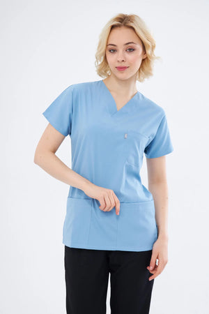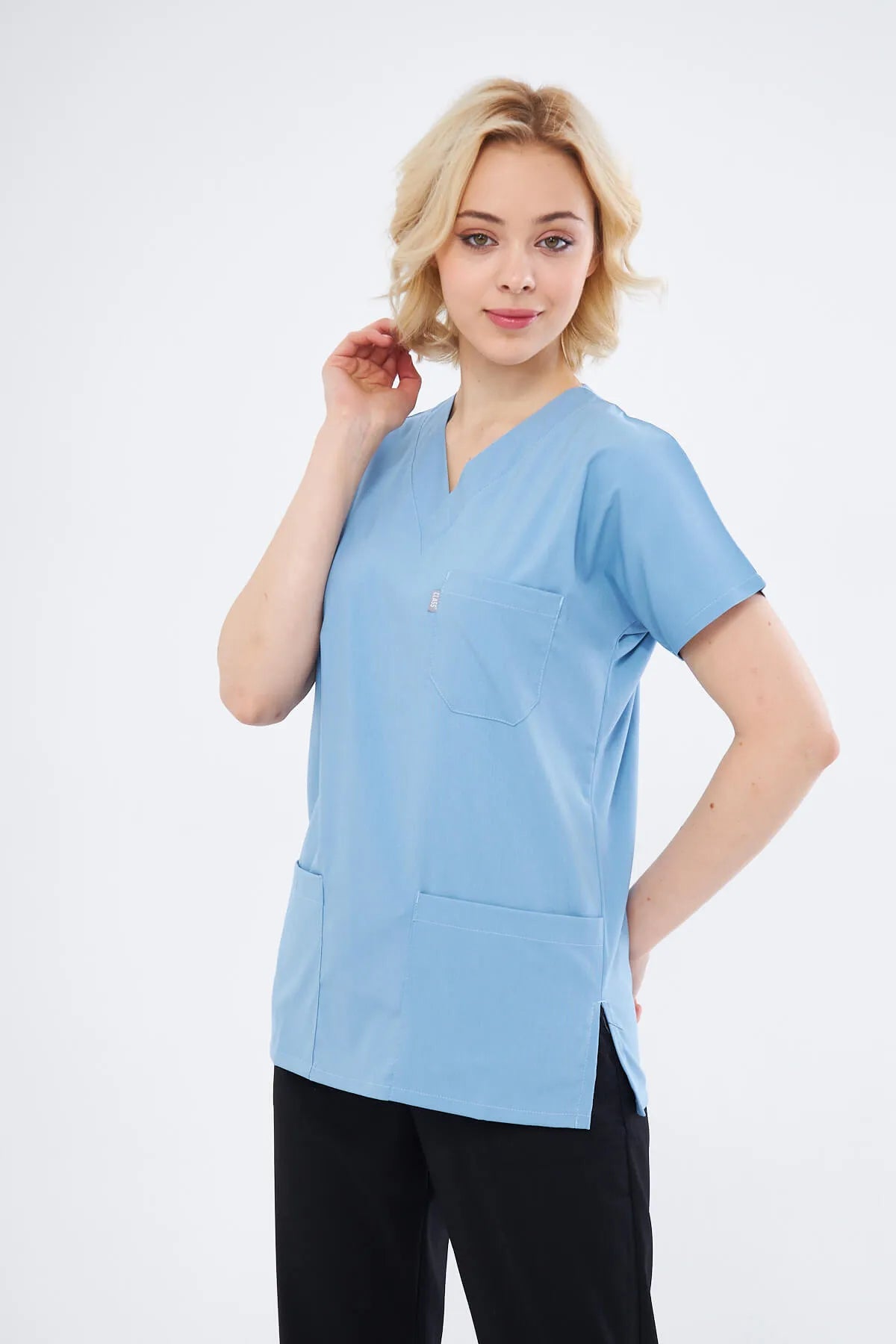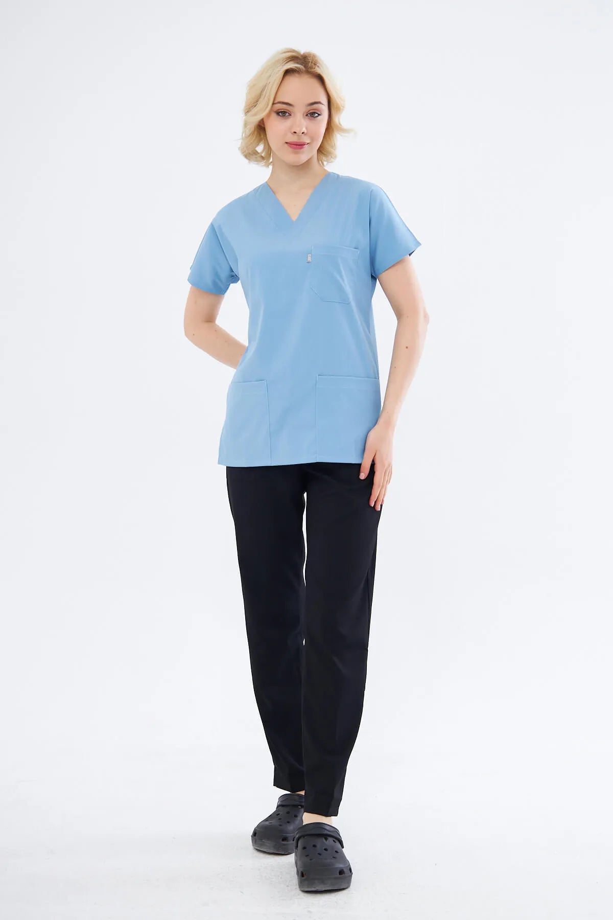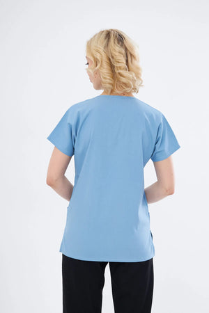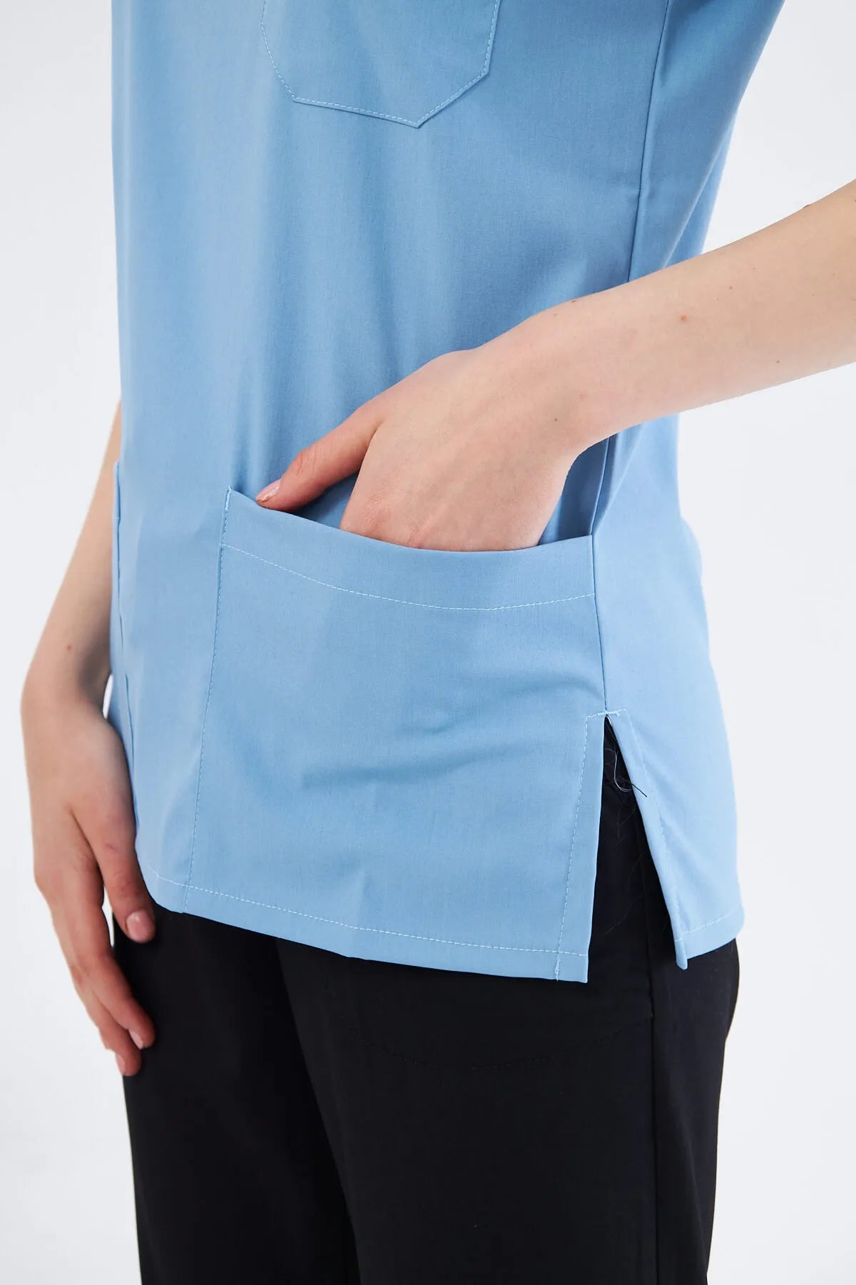 Classic Tek Üst - Bebe Mavisi Likralı Hemşire Forması Üstü