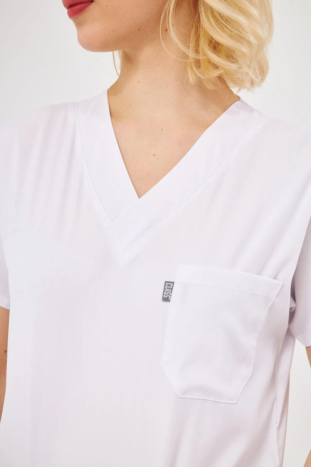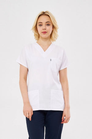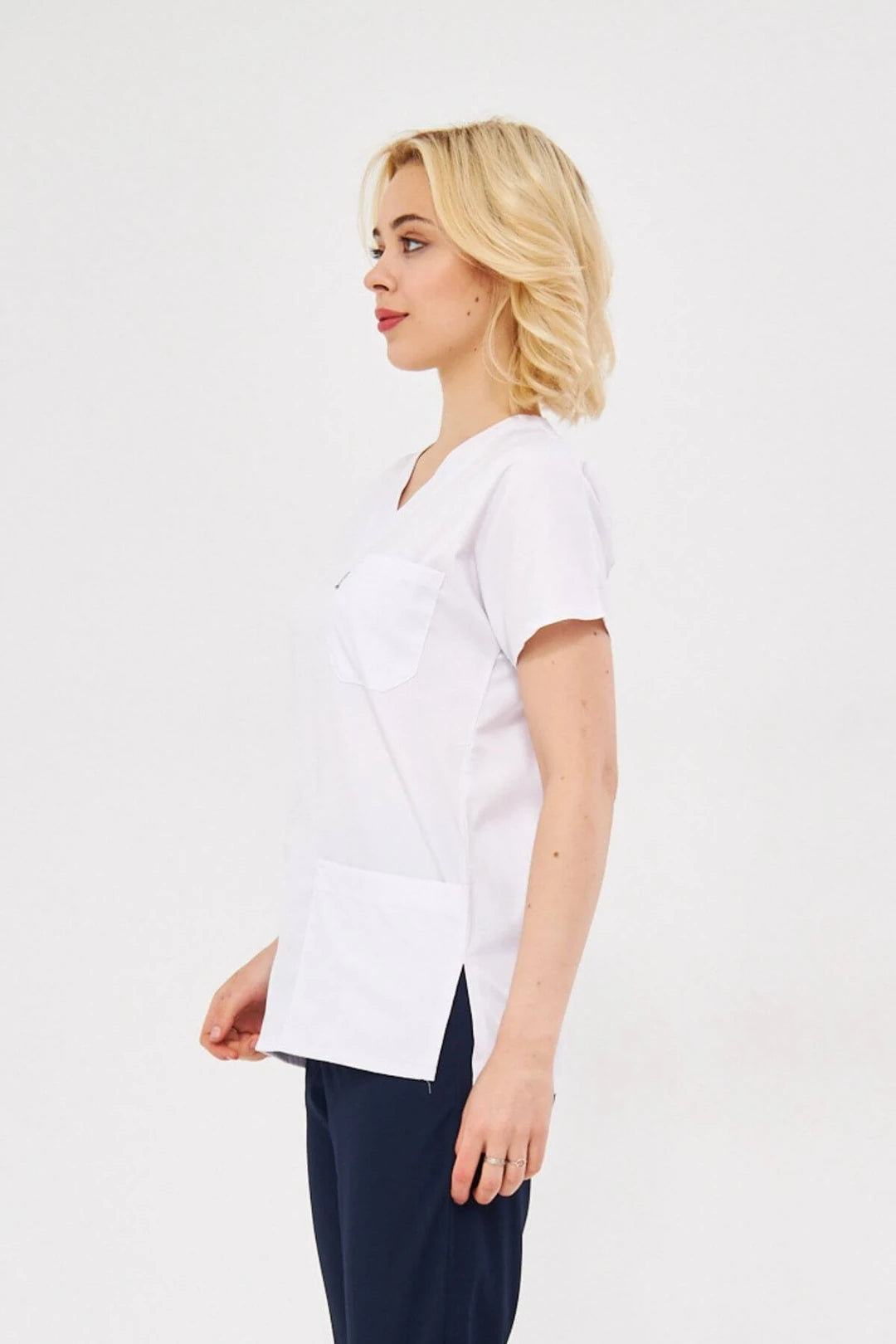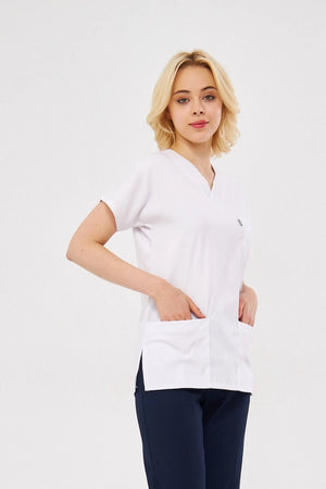 Classic Tek Üst - Beyaz Likralı Hemşire Forması Üstü