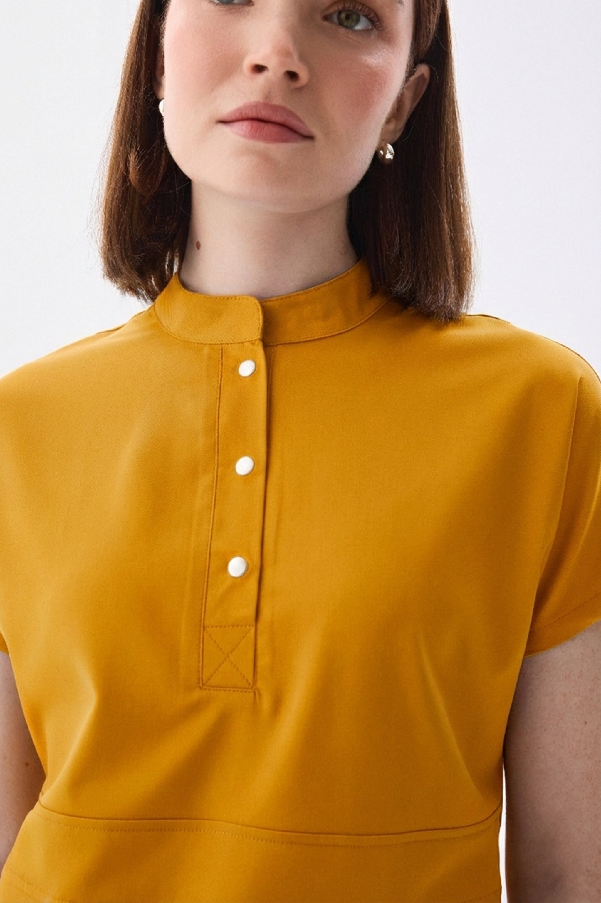 Üst düzey, klasik hâkim yaka tasarımı modern bir duruş sunarken; çıtçıt kapamalı yapısı sayesinde hızlı ve kolay giyinme imkânı sağlar. Alt forma ise düz paça pantolon kesimiyle sade ve profesyonel bir görünüm kazandırır.