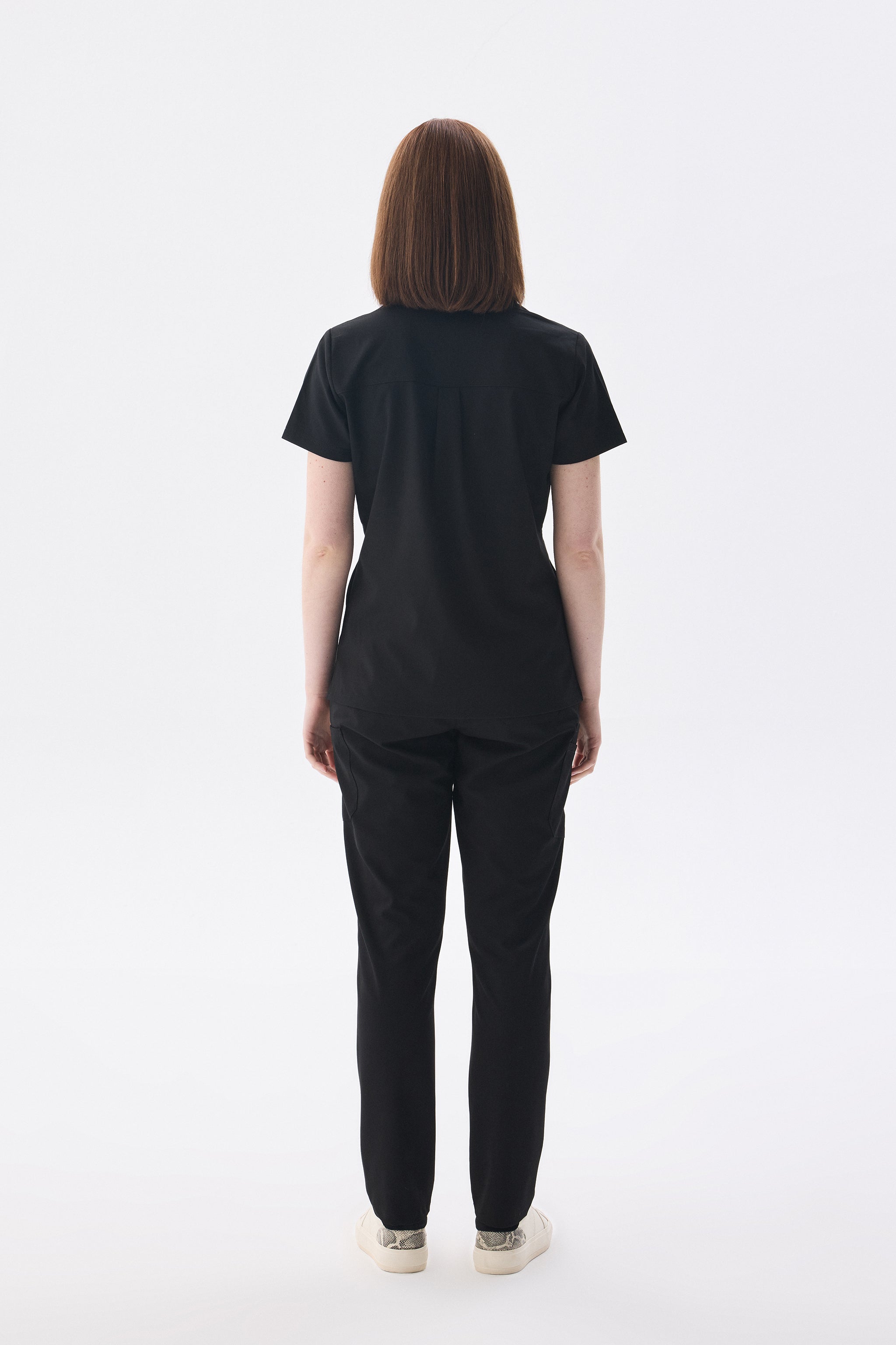 Polo Yaka Siyah Kadın Medikal Üniforma Scrubs Takımı