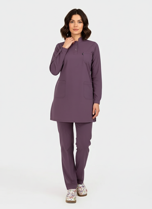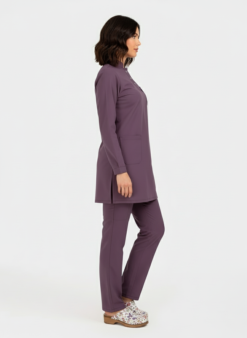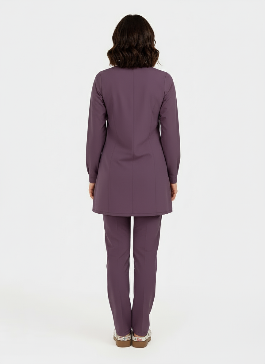 Tesettür - Açık Mürdüm Likralı Hemşire Üniforma Takımı