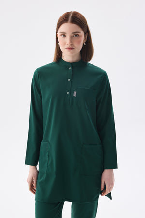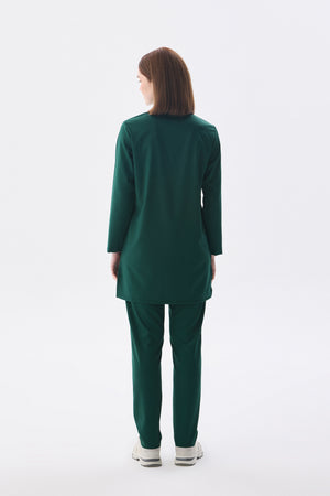 Tesettür - Avcı Yeşili Likralı Hemşire Üniforma Takımı