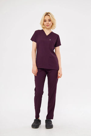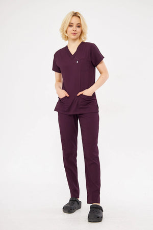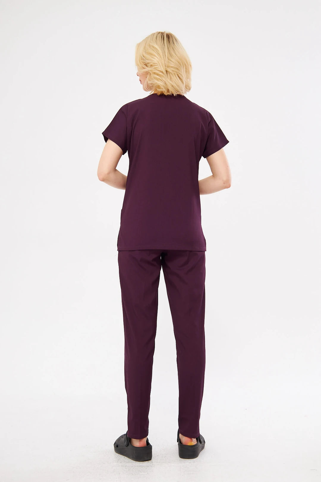 Classic - Koyu Mürdüm Kadın Likralı Üniforma Takımı