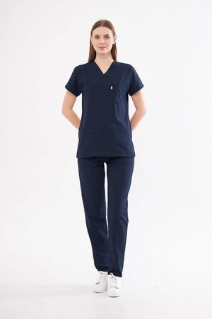 Classic - Lacivert Kadın Likralı Üniforma Takımı