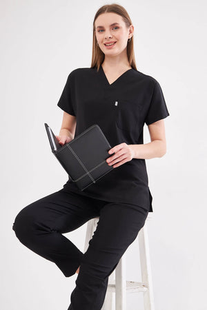 Classic - Siyah Kadın Likralı Üniforma Takımı