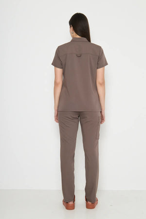 Polo Yaka Kahverengi Kadın Medikal Üniforma Scrubs