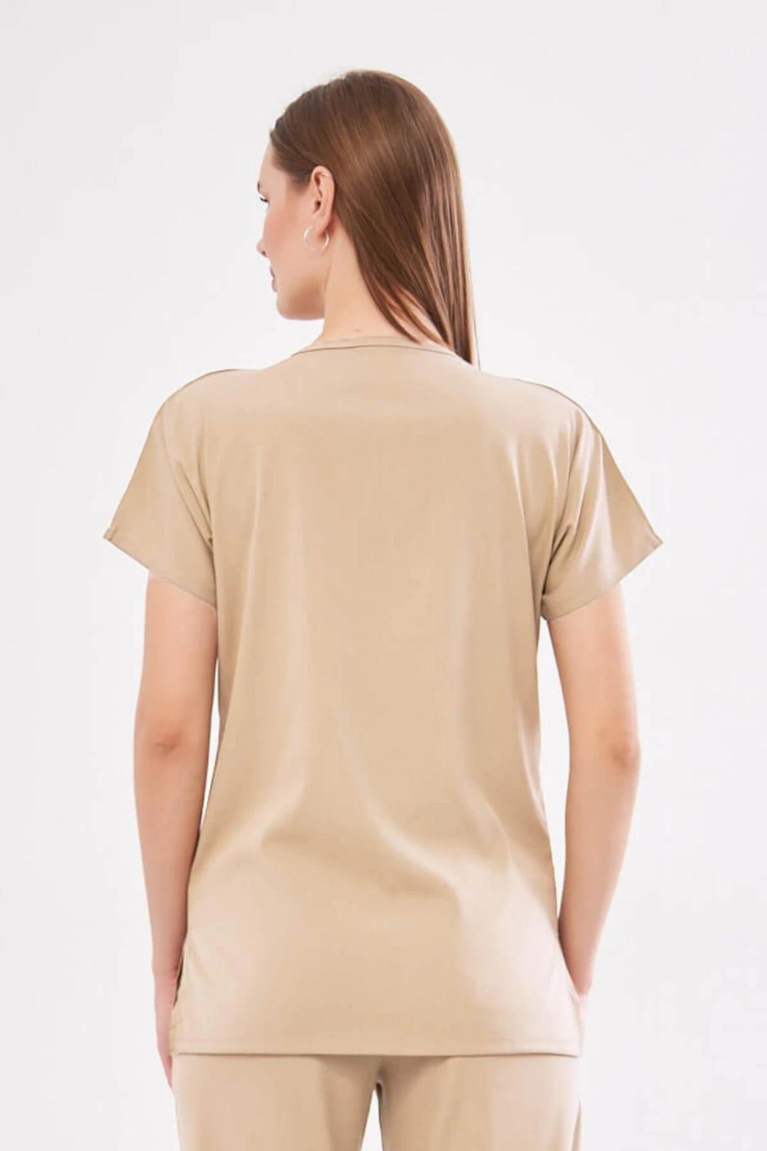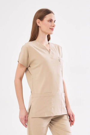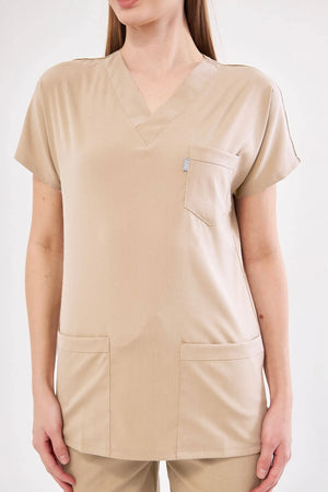 Klassisches Single-Top – Beiges Lycra-Krankenschwester-Jersey-Top