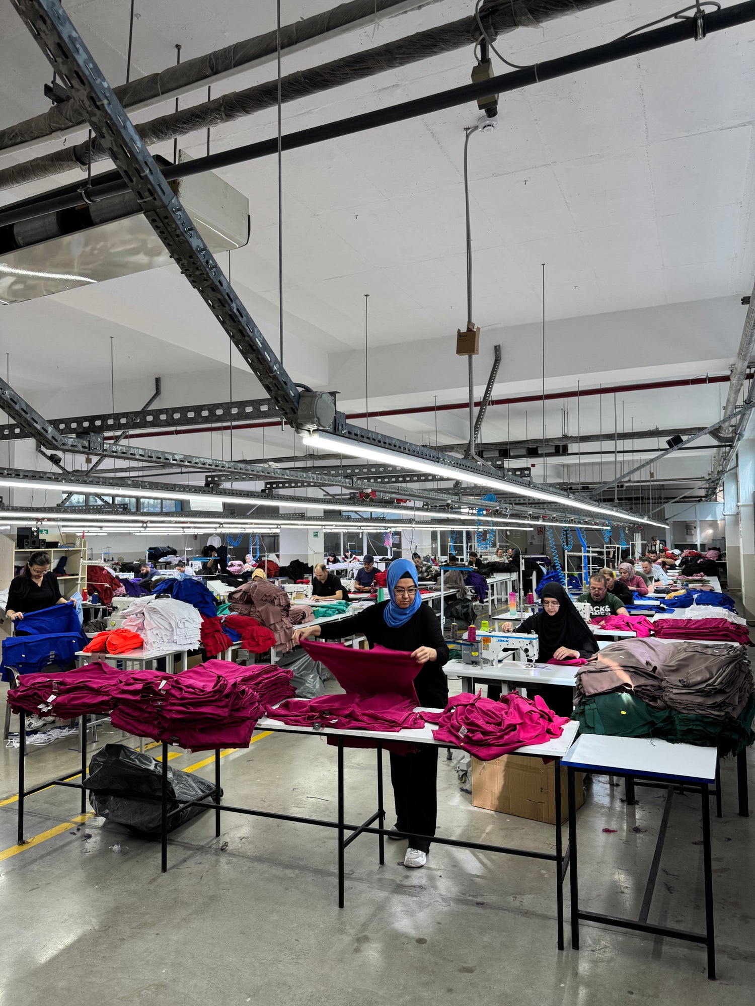 In unserer Fabrik mit einer Fläche von 6000 m2 produzieren wir täglich mehr als 1000 Uniformen für Mitarbeiter im Gesundheitswesen.