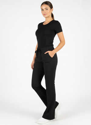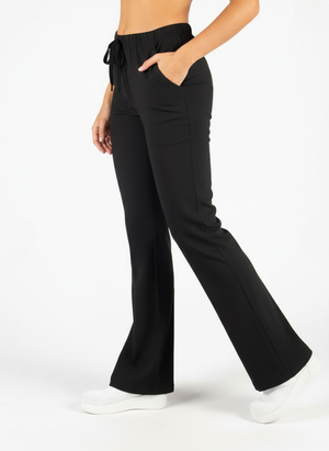 Viskon–polyester–likra karışımlı özel kumaştan üretilen bu kadın İspanyol paça pantolon, şıklığı ve konforu bir arada sunar. Modern kesimi ve rahat yapısı sayesinde gün boyu konforlu bir kullanım sağlar.