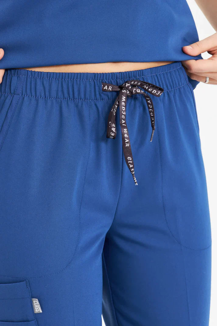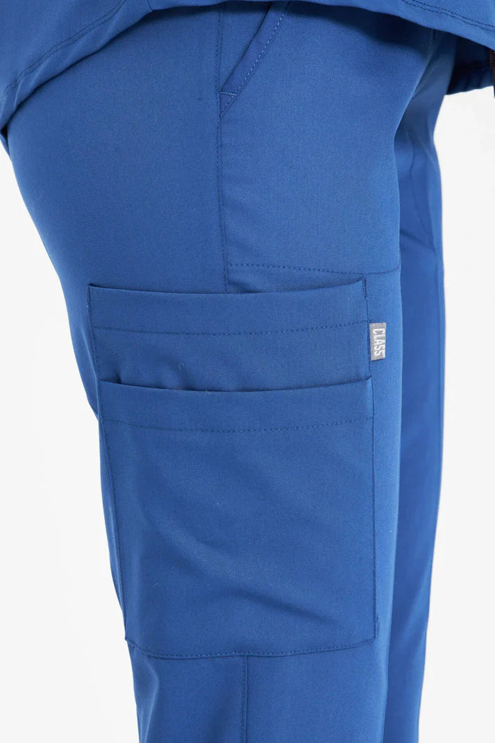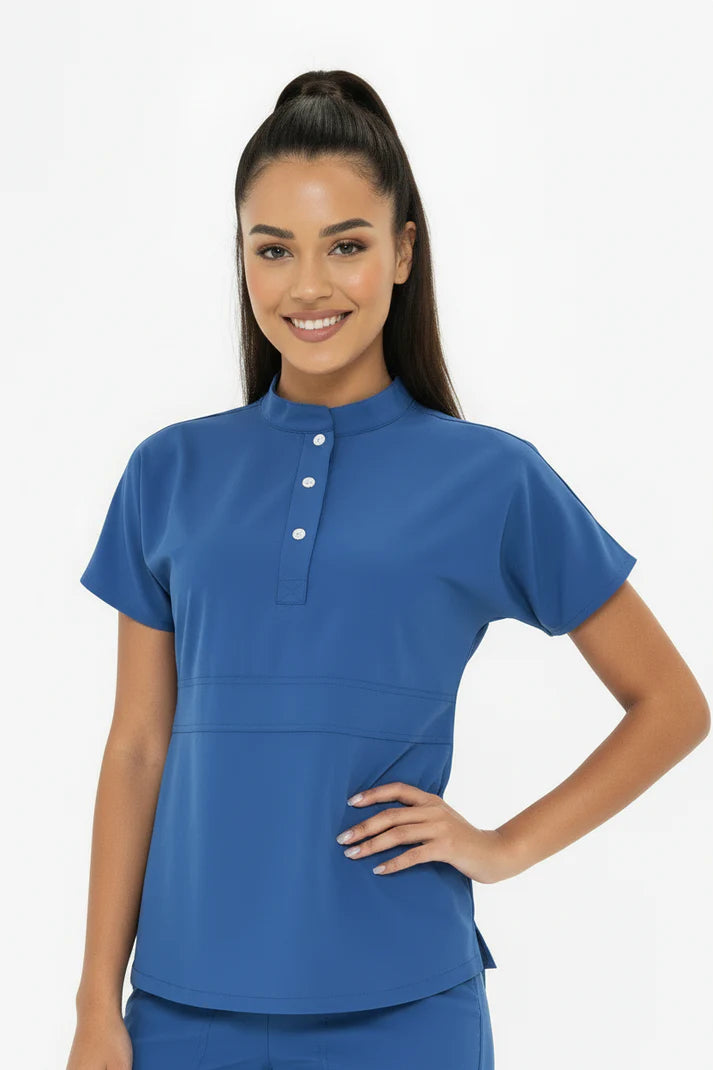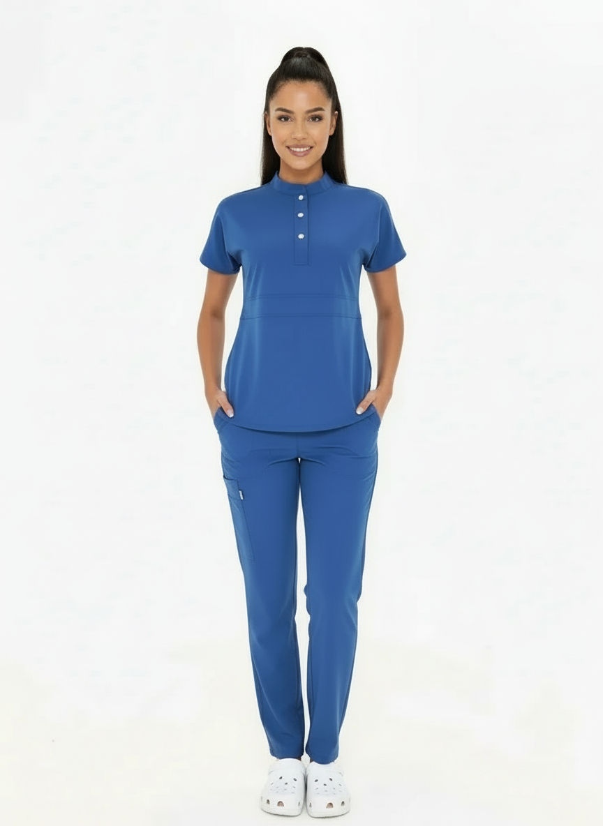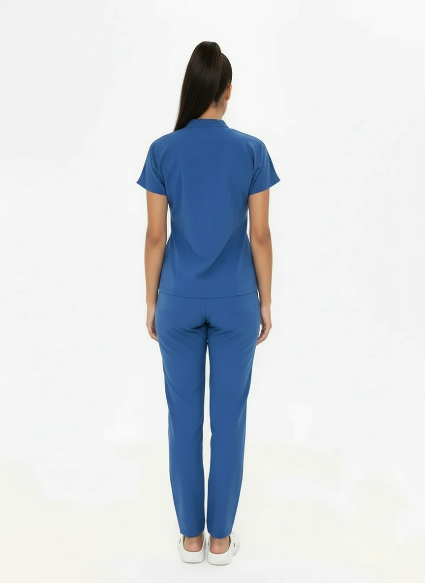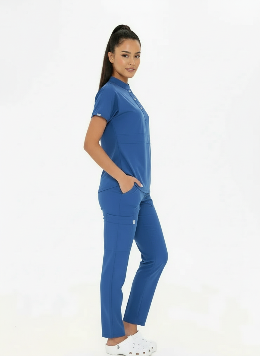 N O V A | Fırtına Mavi Düz Paça Pantolon Kadın Likralı Hakim Yaka Yarım Pat Çıtçıtlı Hemşire Ve Doktor Forması Scrubs