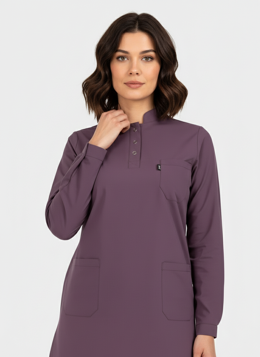 Tesettür - Açık Mürdüm Likralı Hemşire Üniforma Takımı