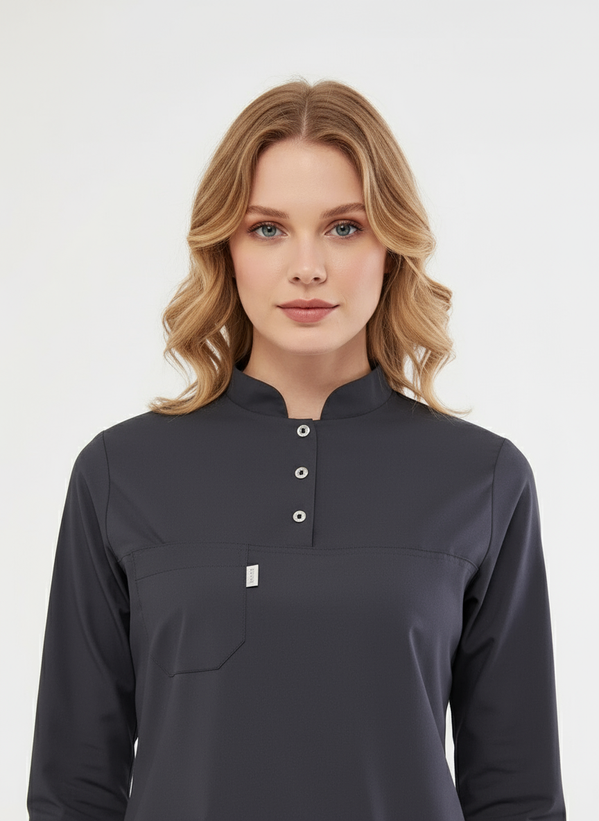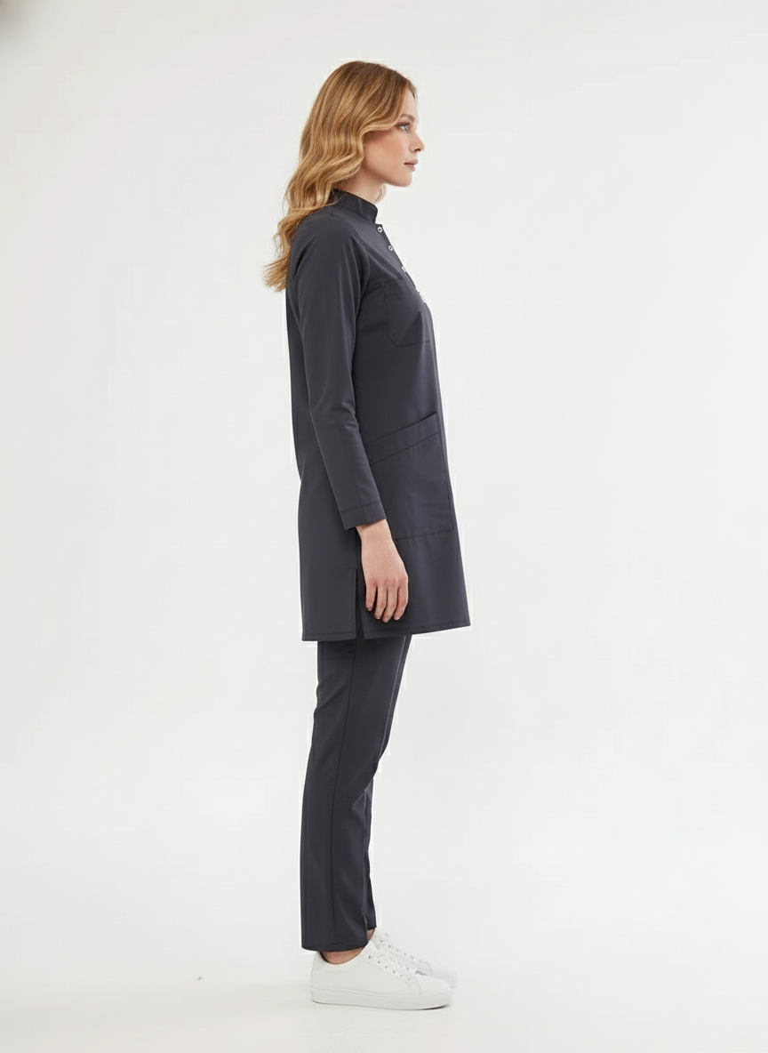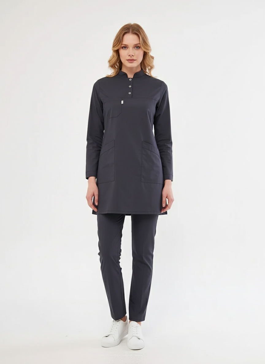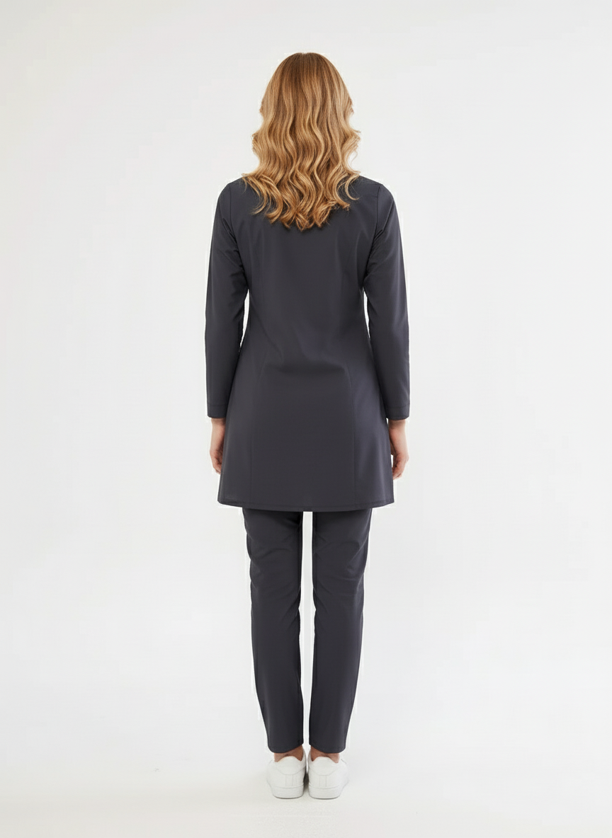 Tesettür - Antrasit Likralı Hemşire Üniforma Takımı