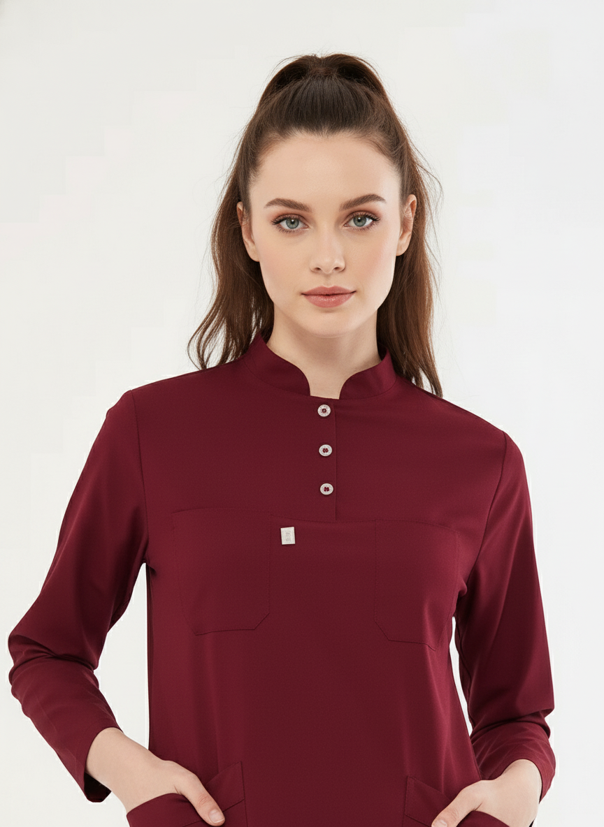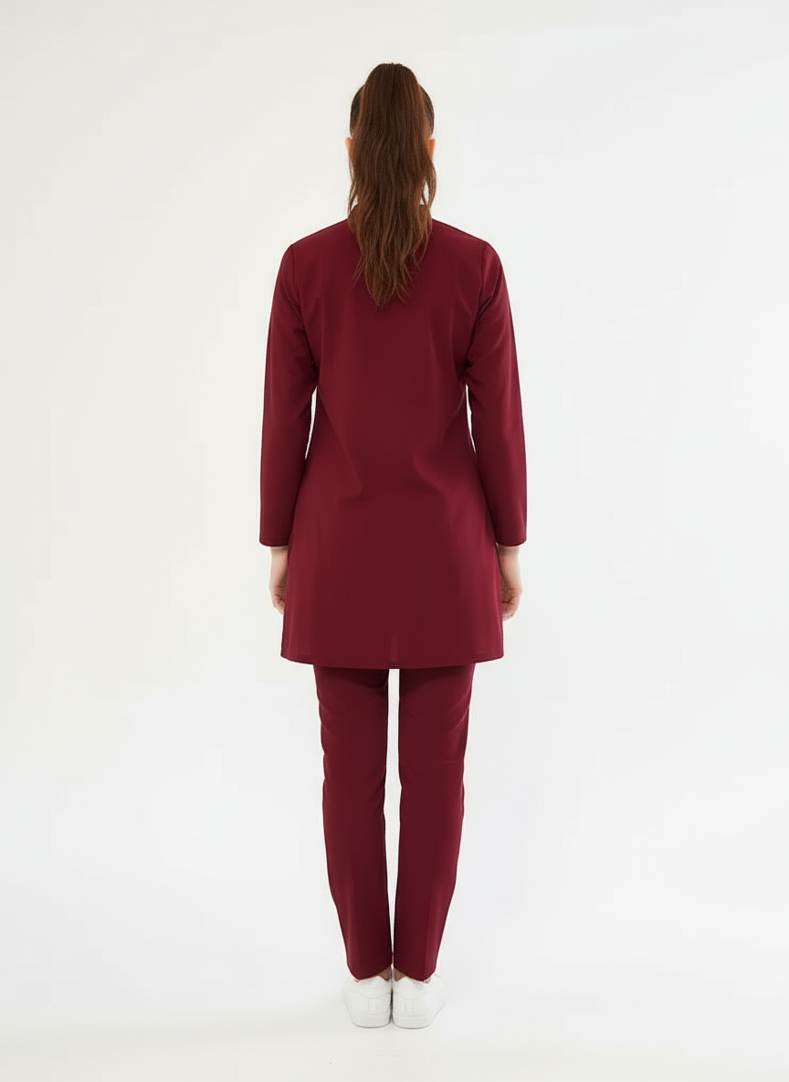 Tesettür - Bordo Likralı Hemşire Üniforma Takımı