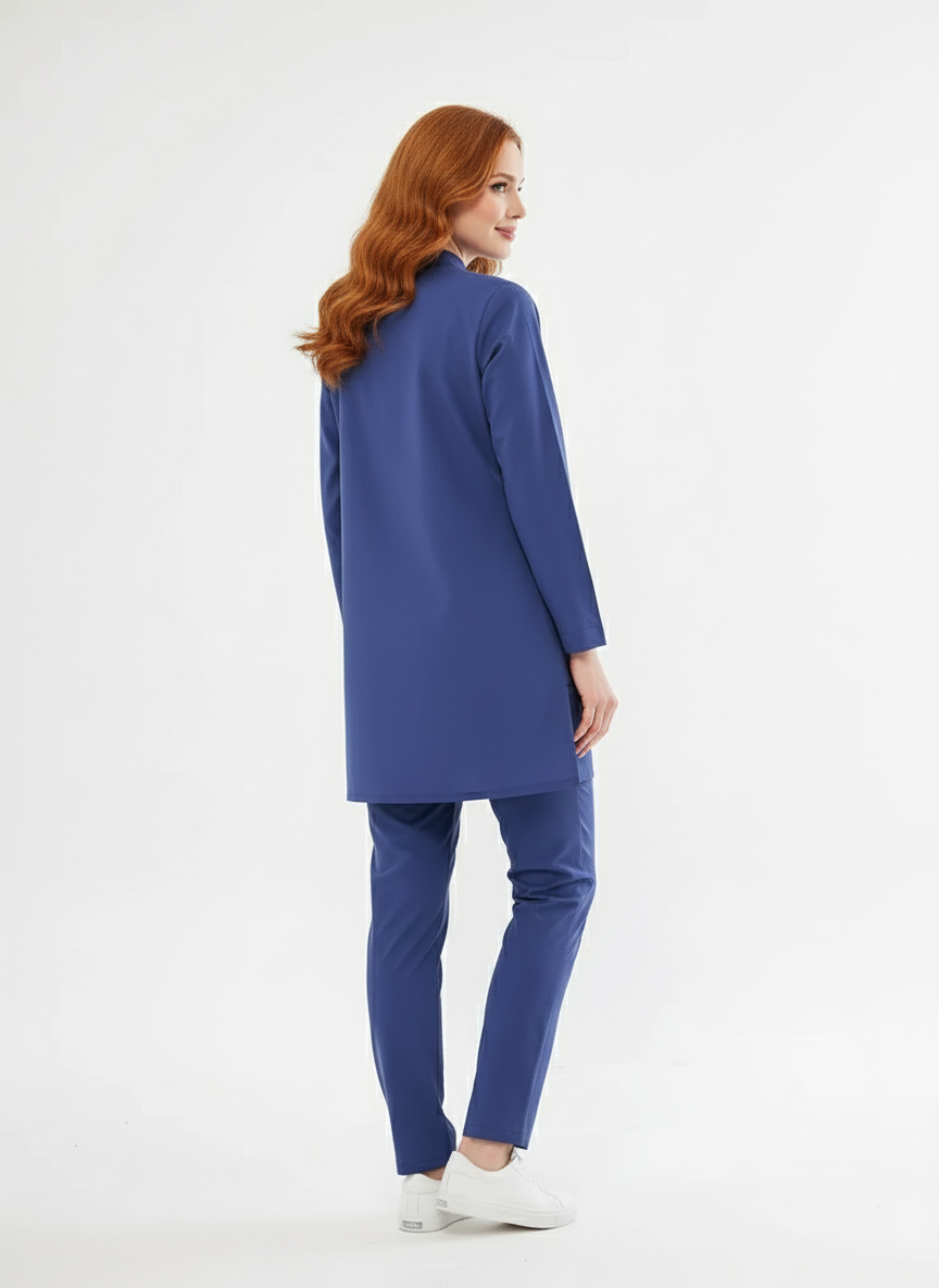 Tesettür - Fırtına Mavi Likralı Hemşire Üniforma Takımı