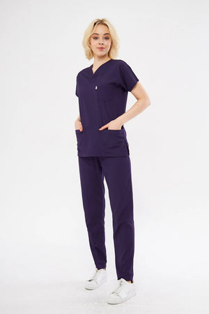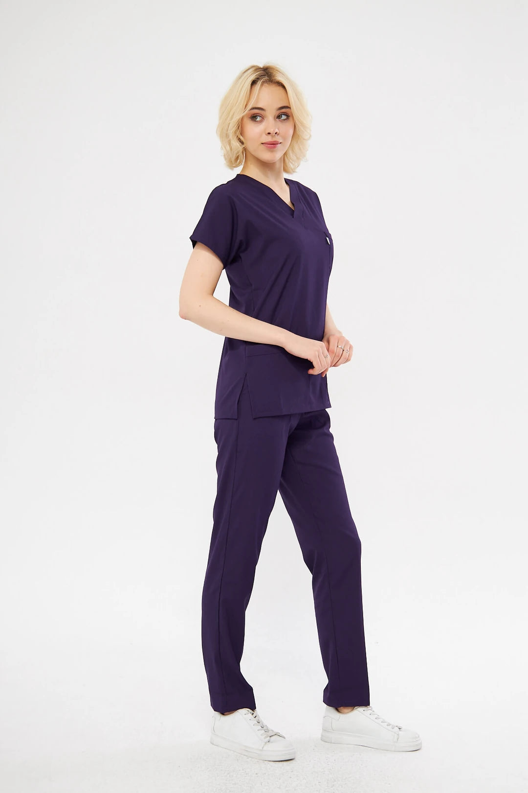 Классический комплект женской униформы из лайкры фиолетового цвета