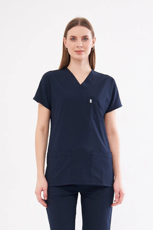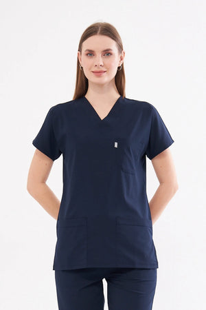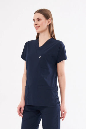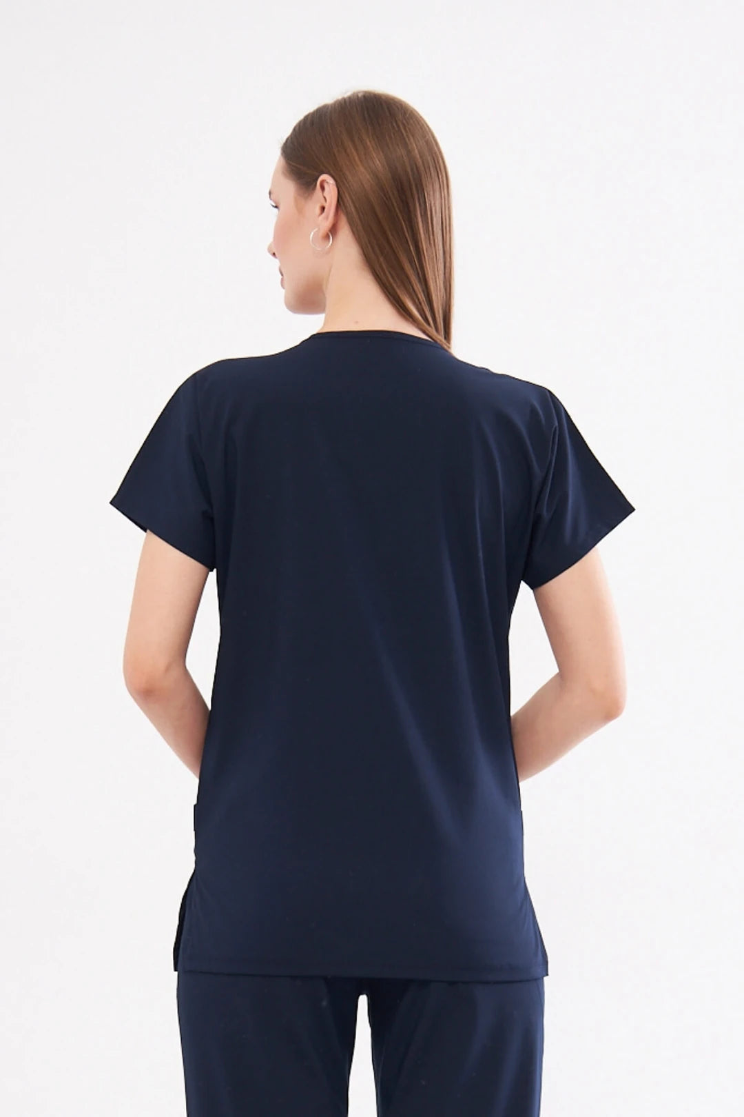 Классический топ из лайкры и джерси для медсестры темно-синего цвета