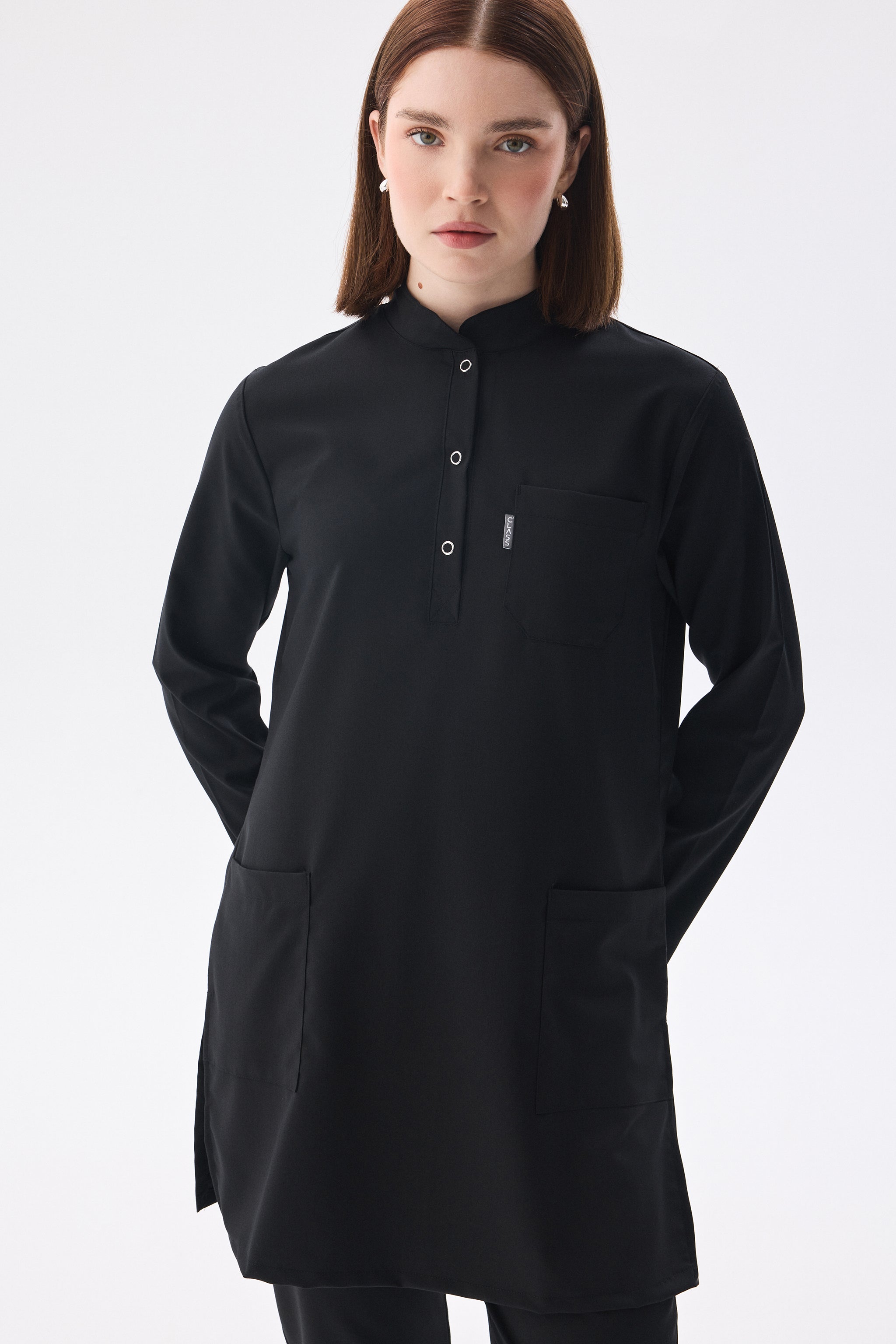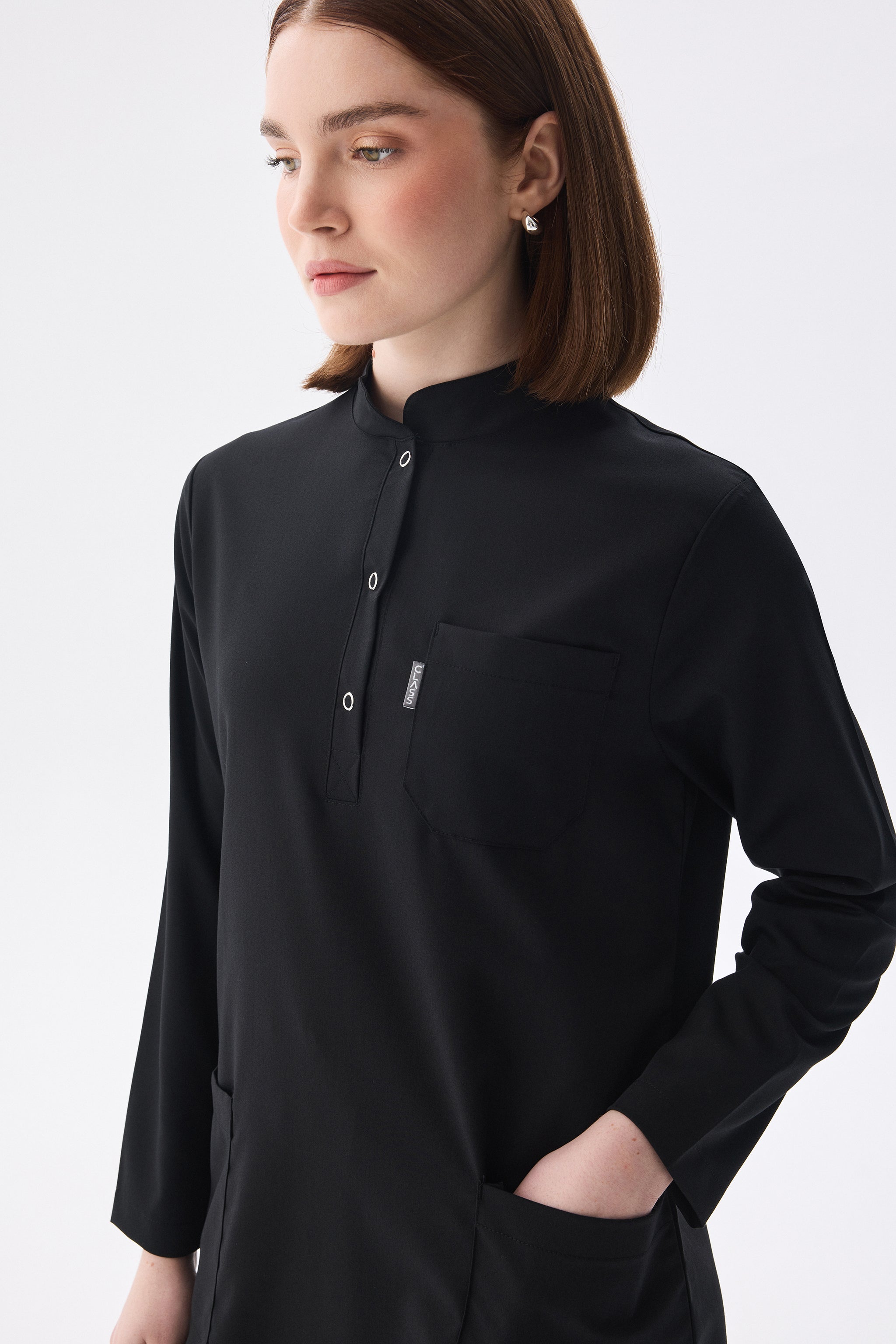 Скромная униформа медсестры от Class Uniform разработана специально для того, чтобы обеспечить комфорт и стиль, необходимые медсестрам в течение рабочего дня. Эта туника с воротником-стойкой и застёжкой на кнопки сочетает в себе комфорт и профессионализм. Классическая униформа медсестры облегающего кроя дополняется одной парой нижних рубашек, создавая полноценный комплект.