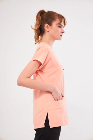 Хирургический топ Classic изготовлен из дышащей, эластичной лайкры, состоящей из смеси 60% полиэстера, 35% вискозы и 5% лайкры. Такая структура ткани обеспечивает комфорт и свободу движений в течение всего дня. Рукава «летучая мышь» и отсутствие швов на рукавах обеспечивают удобную посадку.