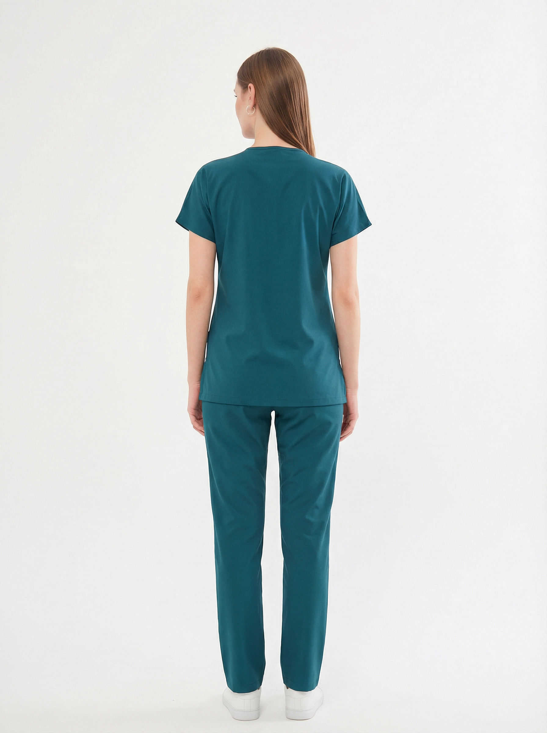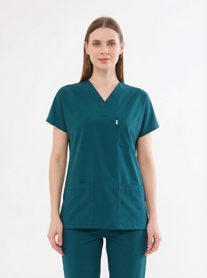Classic Tek Üst - Petrol Yeşili Likralı Hemşire Forması Üstü