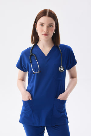 Хирургический топ Classic изготовлен из дышащей, эластичной лайкры, состоящей из смеси 60% полиэстера, 35% вискозы и 5% лайкры. Такая структура ткани обеспечивает комфорт и свободу движений в течение всего дня. Рукава «летучая мышь» и отсутствие швов на рукавах обеспечивают удобную посадку.
