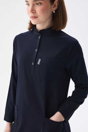 Tesettür Lacivert Tek Üst Likralı Kadın Medikal Üniforma Doktor Ve Hemşire Forması Cerrahi