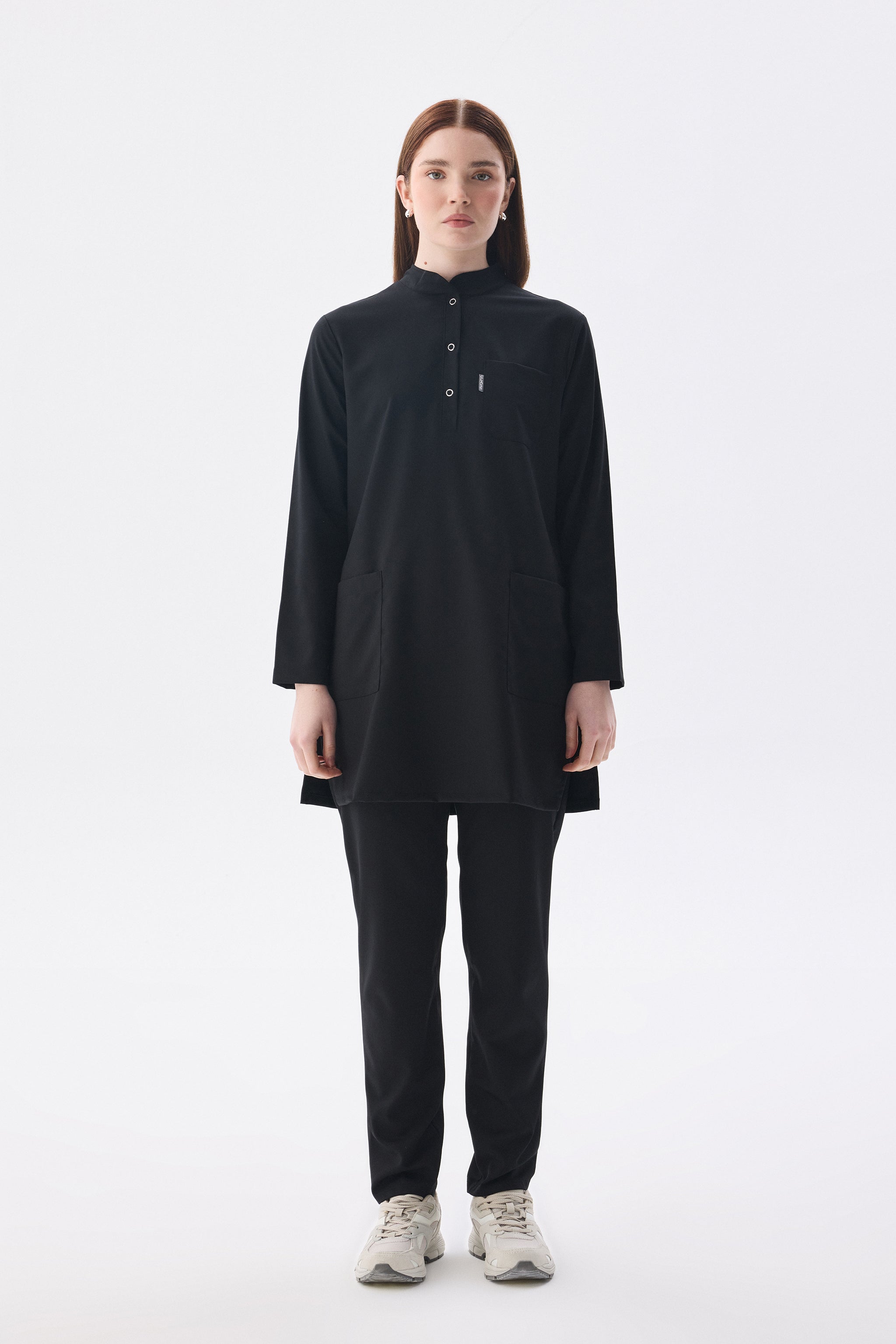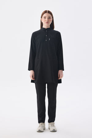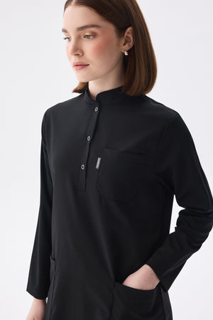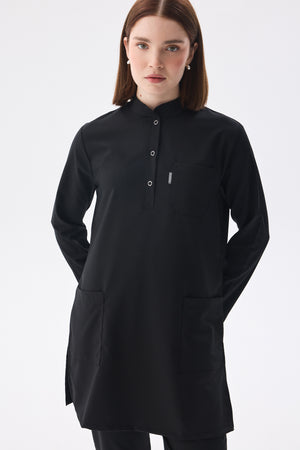 Tesettür Siyah Tek Üst Likralı Kadın Medikal Üniforma Doktor Ve Hemşire Forması Cerrahi