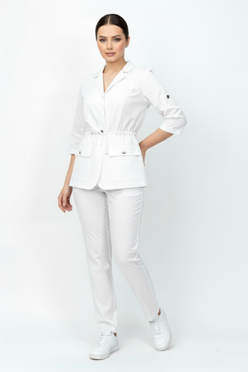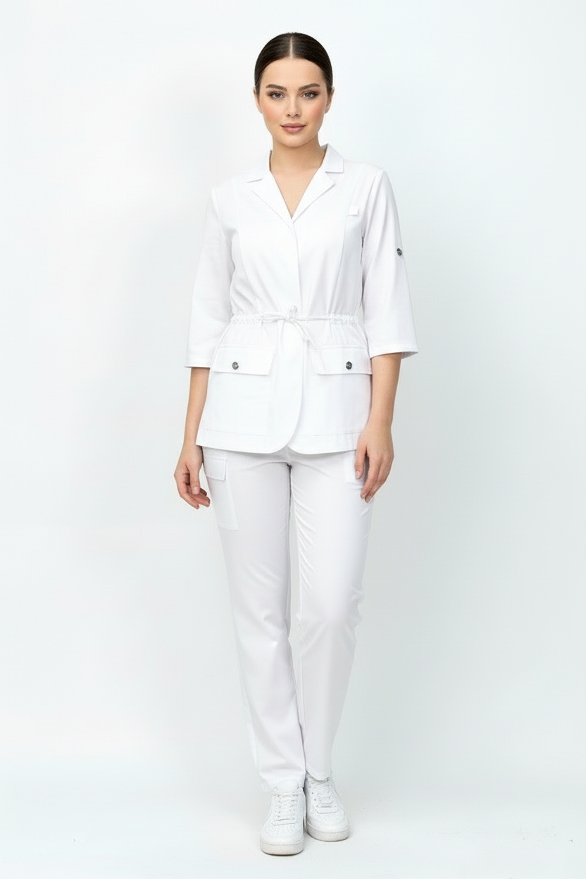 Lisbon'un ceket takımı, kadın kalıbıyla özel olarak tasarlanmış ve likralı kumaştan üretilmiştir. Esnek yapısı sayesinde gün boyu konfor sağlar. Ürünlerde görsel olarak yer alan beden tablosuna göz atarak sipariş vermenizi, üniformanın bedene uygun olmasını sağlar. Nova - Premium Scrubs modelimizde şu anda 2 farklı renk seçeneği bulunmaktadır.