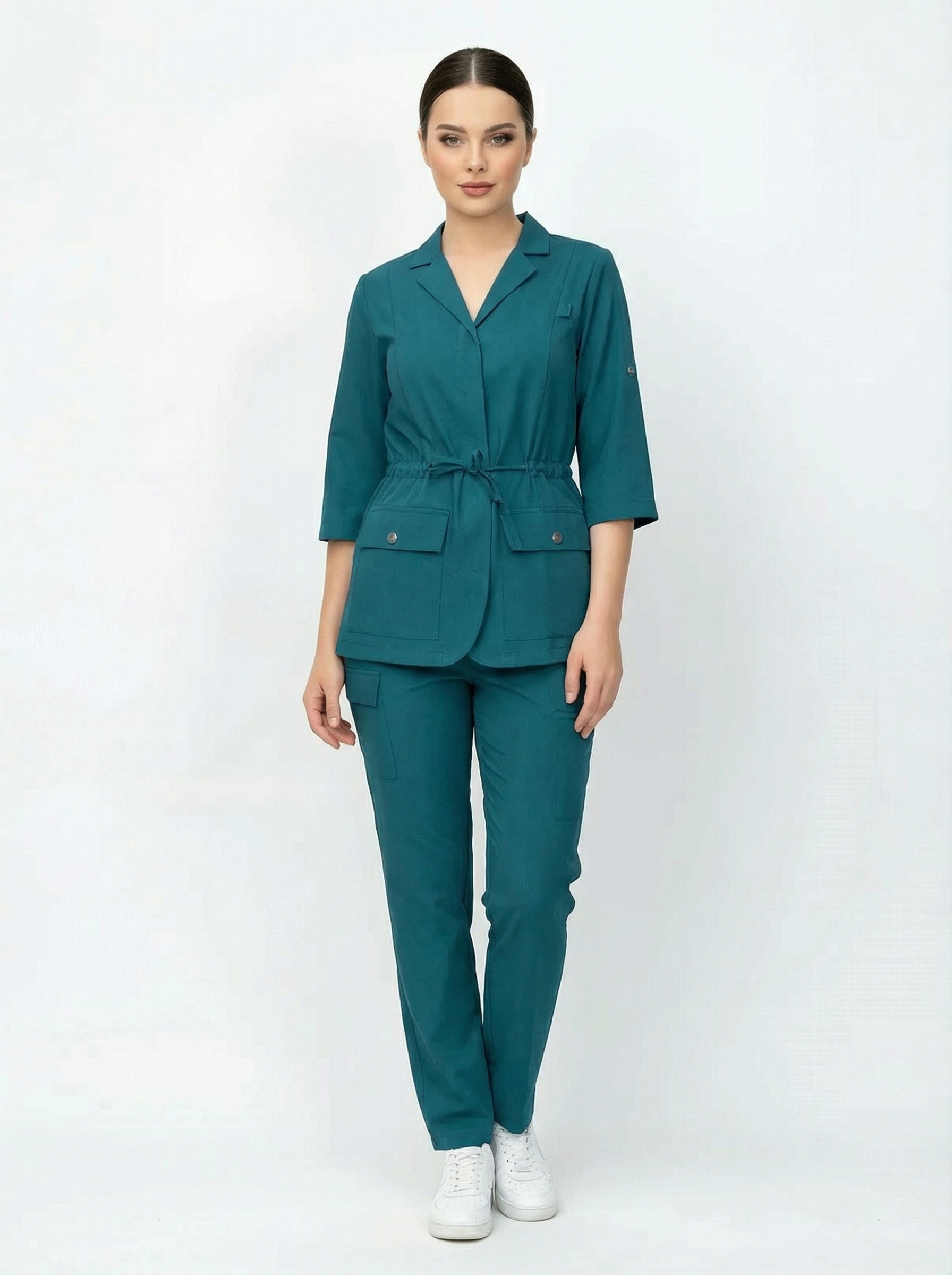 Lisbon'un ceket takımı, kadın kalıbıyla özel olarak tasarlanmış ve likralı kumaştan üretilmiştir. Esnek yapısı sayesinde gün boyu konfor sağlar. Ürünlerde görsel olarak yer alan beden tablosuna göz atarak sipariş vermenizi, üniformanın bedene uygun olmasını sağlar. Nova - Premium Scrubs modelimizde şu anda 2 farklı renk seçeneği bulunmaktadır.