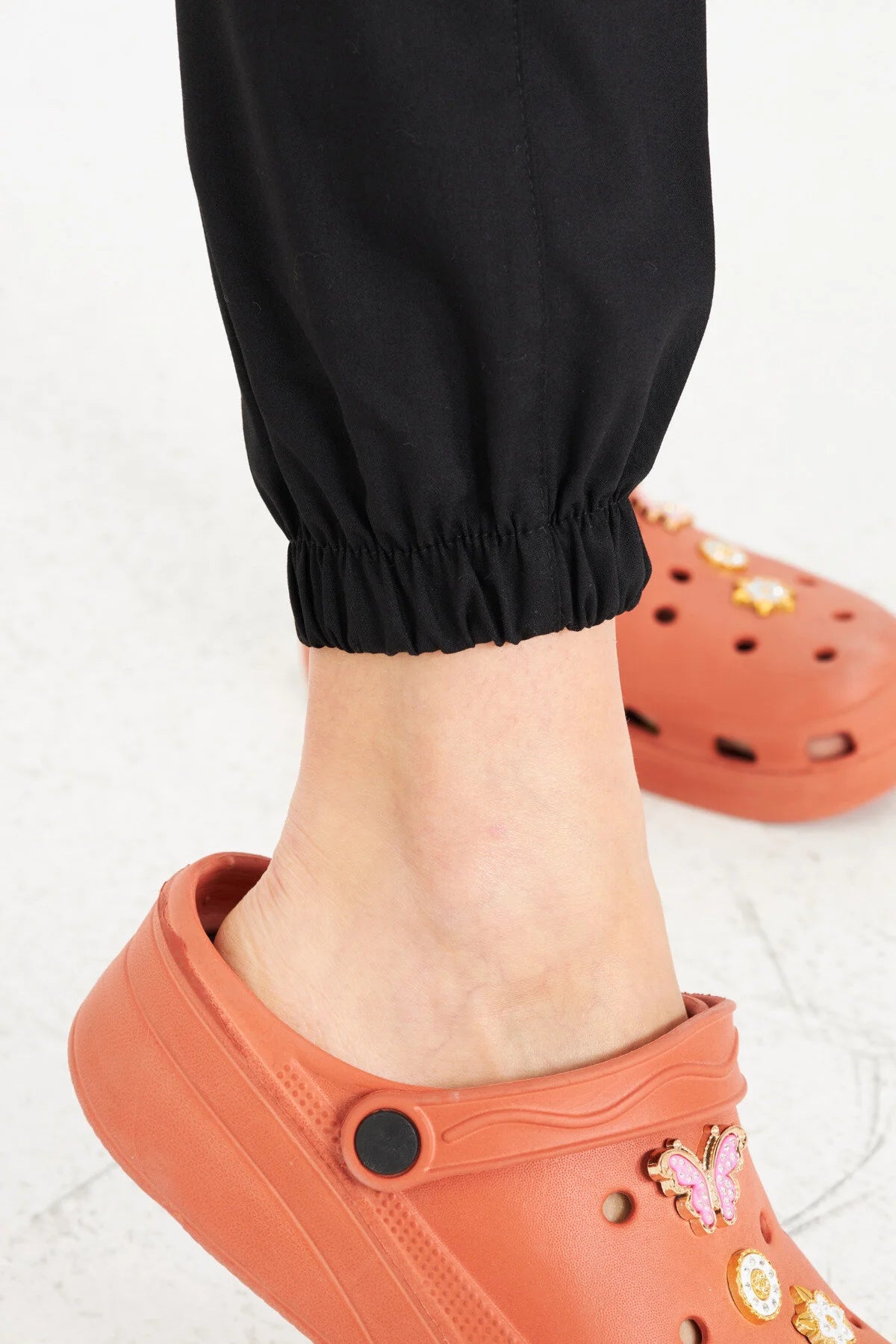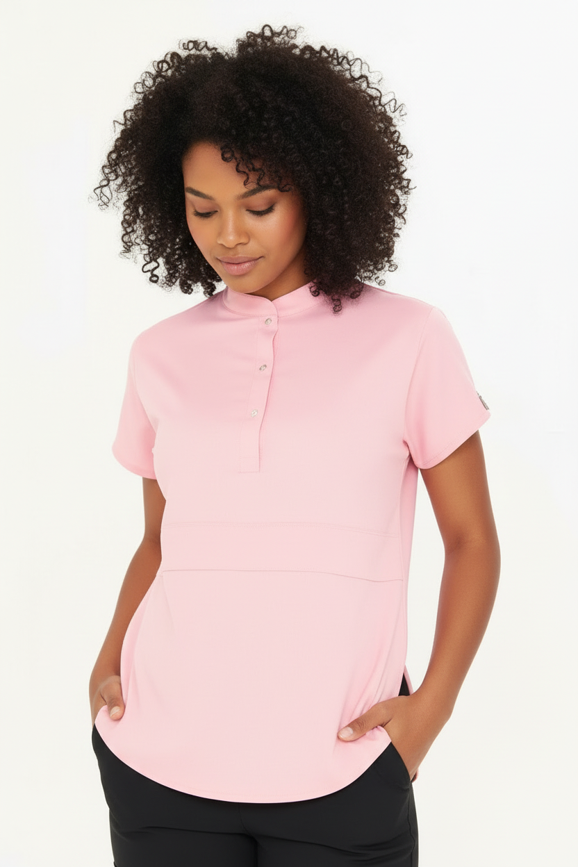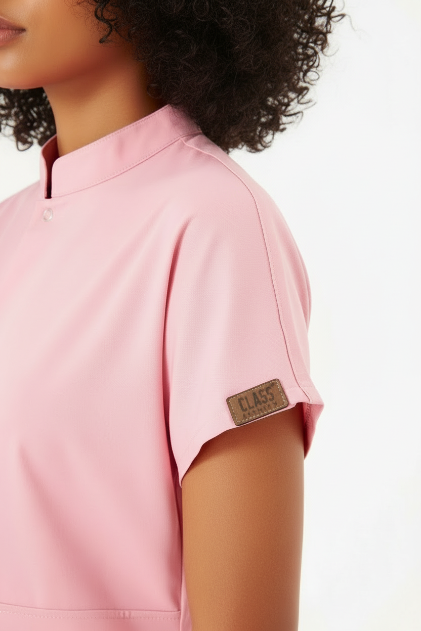 N O V A | Pembe Siyah Kadın Likralı Hakim Yaka Yarım Pat Çıtçıtlı Hemşire Ve Doktor Forması Scrubs