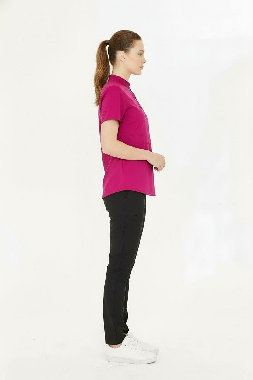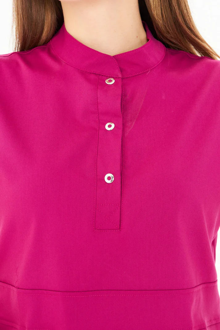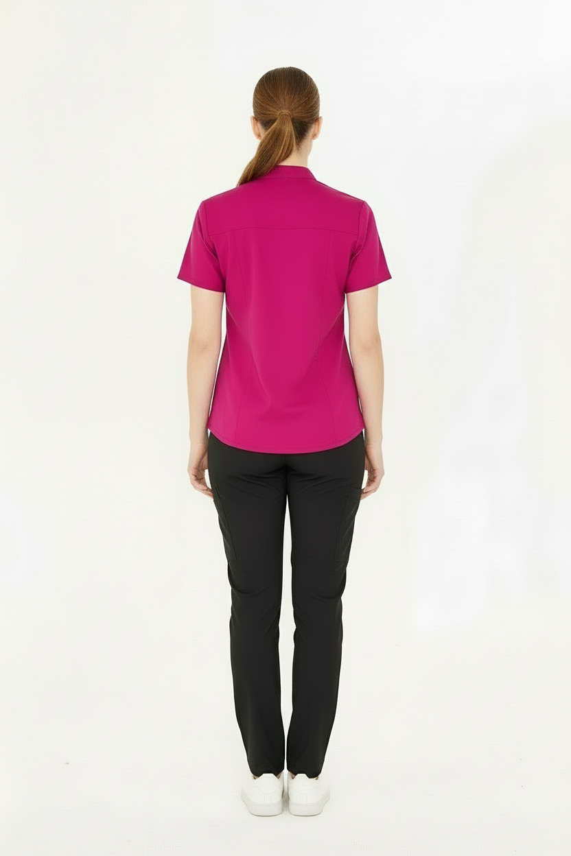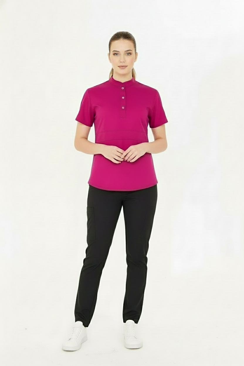 N O V A | Vişne Siyah Kadın Likralı Hakim Yaka Yarım Pat Çıtçıtlı Hemşire Ve Doktor Forması Scrubs