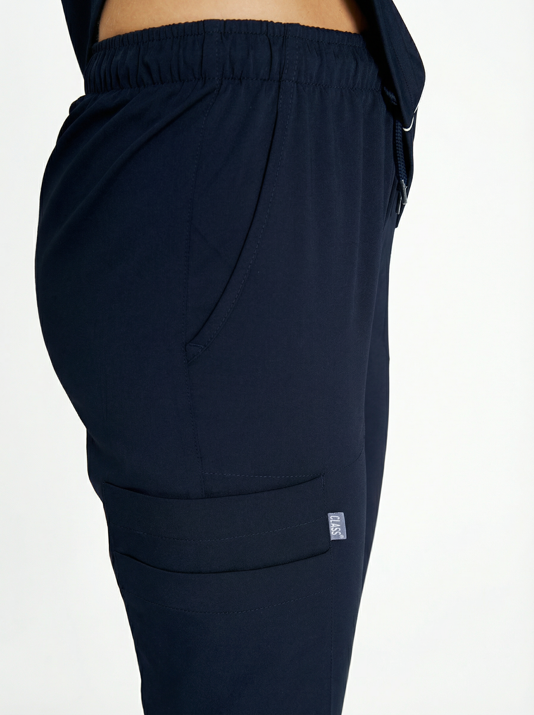 Kadınlara özel tasarlanmış 3 Adet yeni nesil cep, pantolonda ise 2 adet yan cep ve 2 adet kargo cep Pantolon beli lastiklidir ve özel Class logolu iplik kullanılmıştır Yüksek bel Paçaları düz model